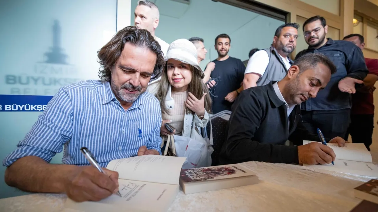 Söyleşi sonrasında Başkan Dr. Cemil Tugay, Murat Ağırel ve Timur Soykan’ı tebrik ederek çiçek takdim etti. Ardından Ağırel ve Soykan okurları için kitaplarını imzaladı.