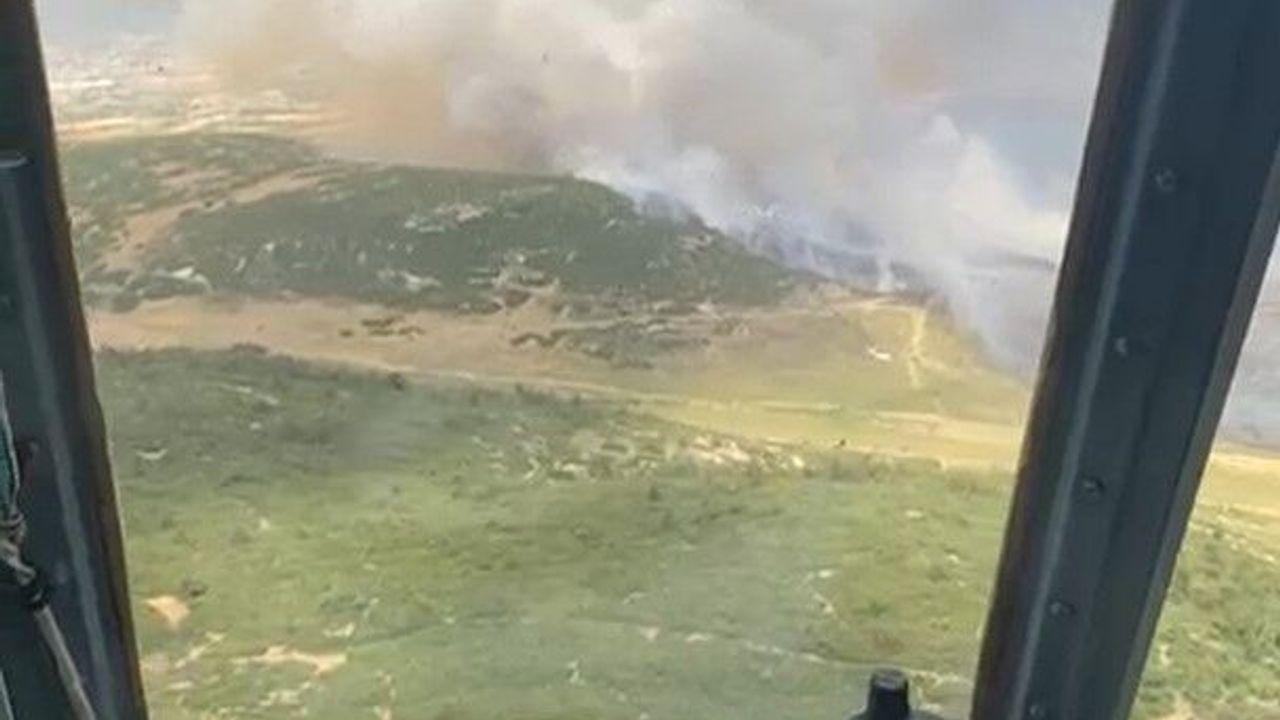 İzmir’in Foça ilçesinde, tarım arazisinde çıkan yangın, makilik alana da sıçradı. Alevlere havadan ve karadan müdahale ediliyor.