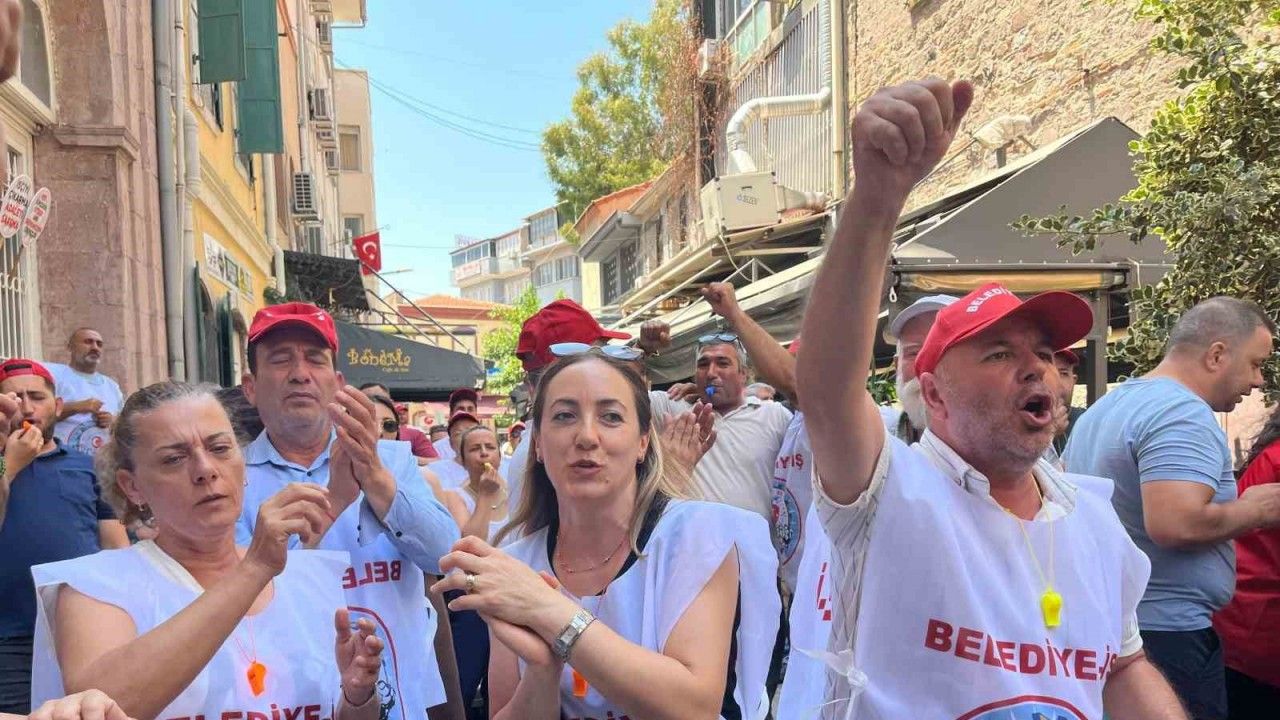 İzmir Büyükşehir Belediyesi’nden çıkarılan yüzlerce işçi, sendikalarıyla birlikte belediye binası önünde eylemlerini sürdürüyor. "İşimizi geri istiyoruz" sloganlarıyla ses yükselten işçiler, haklarını alana kadar mücadeleye devam edeceklerini söylüyor.