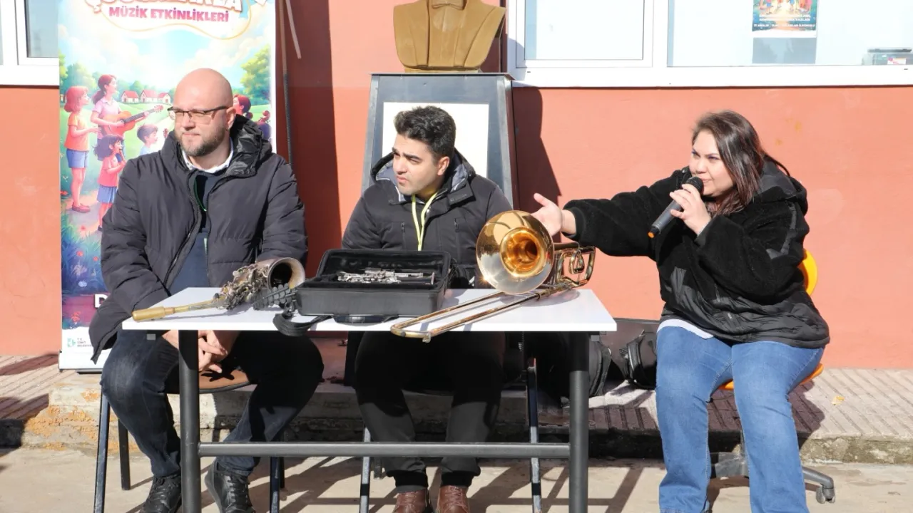 Kocaeli'ne bağlı İzmit Belediyesi kırsal bölgelerdeki okullarda Gülümseyen Çocuklar Müzik Etkinlikleri programında Solaklar Köyünde başladı.KOCAELİ (İGFA) - İzmit Belediyesi Kent Orkestrasında görev yapan müzisyenler Solaklar İlköğretim Okulunda eğitim gören miniklere Gülümseyen Çocuklar Müzik Etkinlikleri kapsamında kullandıkları enstrümanları tanıttılar. Öğrencilerin yoğun ilgi gösterdiği programda klarnet, saksafon ve trombon müzik aletleri önce tanıtıldı ardından da marşlar çalındı.