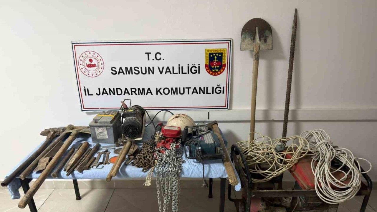 Edinilen bilgiye göre, Samsun İl Jandarma Komutanlığı ekipleri, Alaçam ilçesinde 4 şahsın define aramak için kaçak kazı yaptığı bilgisine ulaştı. Bölgeye yapılan operasyonda, şahıslar kazı yaptıkları esnada kullandıkları malzemelerle birlikte yakalandı. Yakalanan 4 kişi hakkında soruşturma başlatıldı.