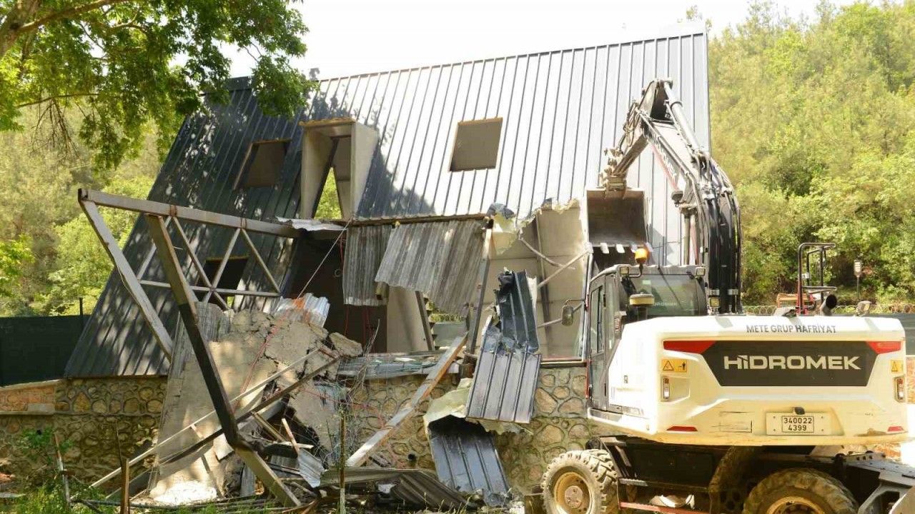 Zabıta ekiplerinin güvenlik önlemleri eşliğinde gerçekleştirilen yıkım çalışmasında, bin 900 metrekarelik arazi üzerine kurulu toplam 270 metrekarelik iki kaçak villa ile birlikte alandaki müştemilat da kullanılamaz hale getirildi.