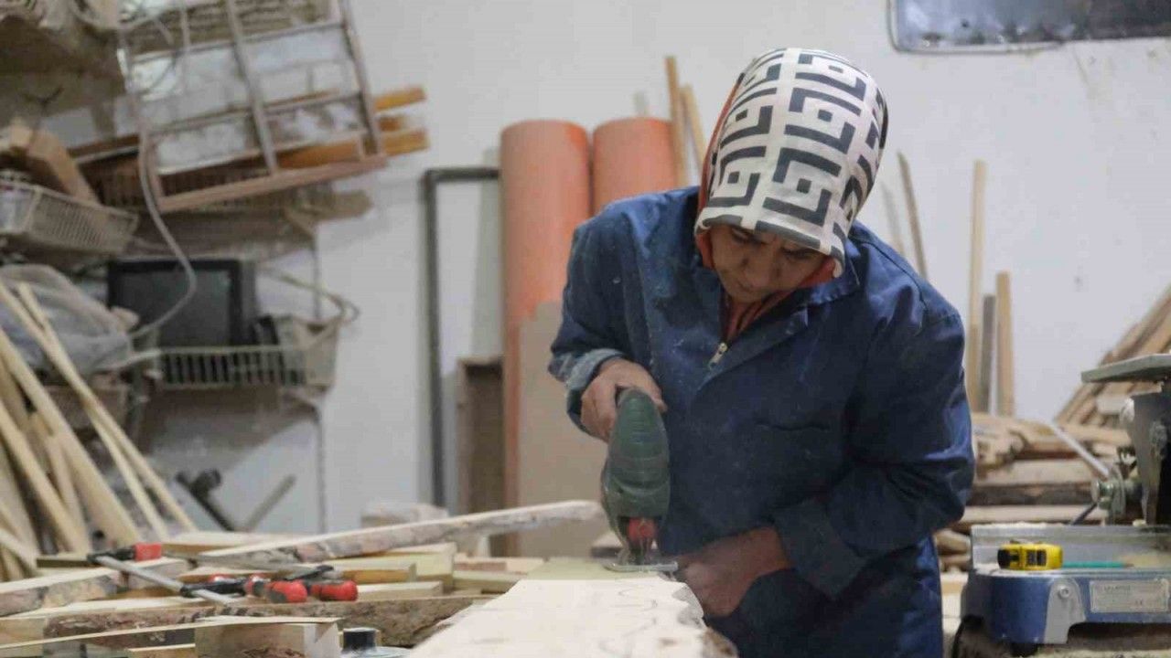 Erzincan’da 15 yıl önce kendi imkânıyla kurduğu işletmesinde sedir, şark köşesi ve sandalye gibi ahşap ürün imalatı yapan kadın girişimci tek başına hem üretim hem de döşeme tamiri yaparak ev ekonomisine katkı sunuyor.