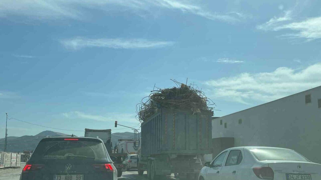 Hatay’da düzensiz yüklenen hurda demir yüküyle trafiğe çıkan kamyon sürücüsü trafiği tehlikeye soktu.