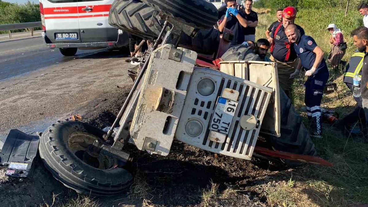Edinilen bilgiye göre, saat 17.45 sıralarında Harmanlı Mahallesi yakınlarında, Balıkesir istikametinden Bursa yönüne seyir halinde olan Mehmet Emin A.’nın kullandığı 33 AZT 075 plakalı çekici, Hüseyin Ş. (64) yönetimindeki 16 TM 750 plakalı traktöre çarptı. Çarpışmanın etkisiyle devrilen traktörün sürücüsü yaralandı. Yaralı, ambulansla Karacabey Devlet Hastanesi’ne kaldırılarak tedavi altına alındı.
