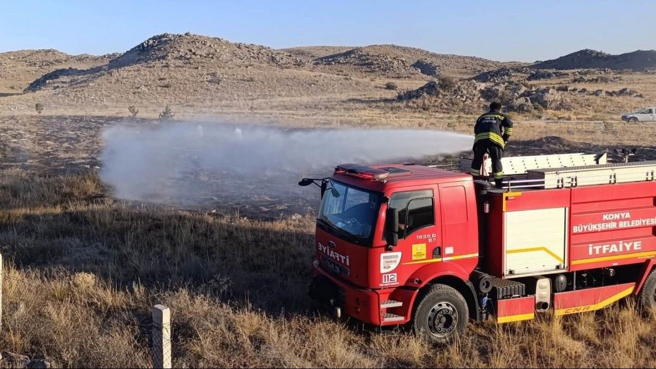 Konya’nın Karapınar ilçesinde çocukların ateşle oynaması sonucu boş bir arsada çıkan ot yangını, itfaiye ekiplerinin müdahalesiyle söndürüldü.