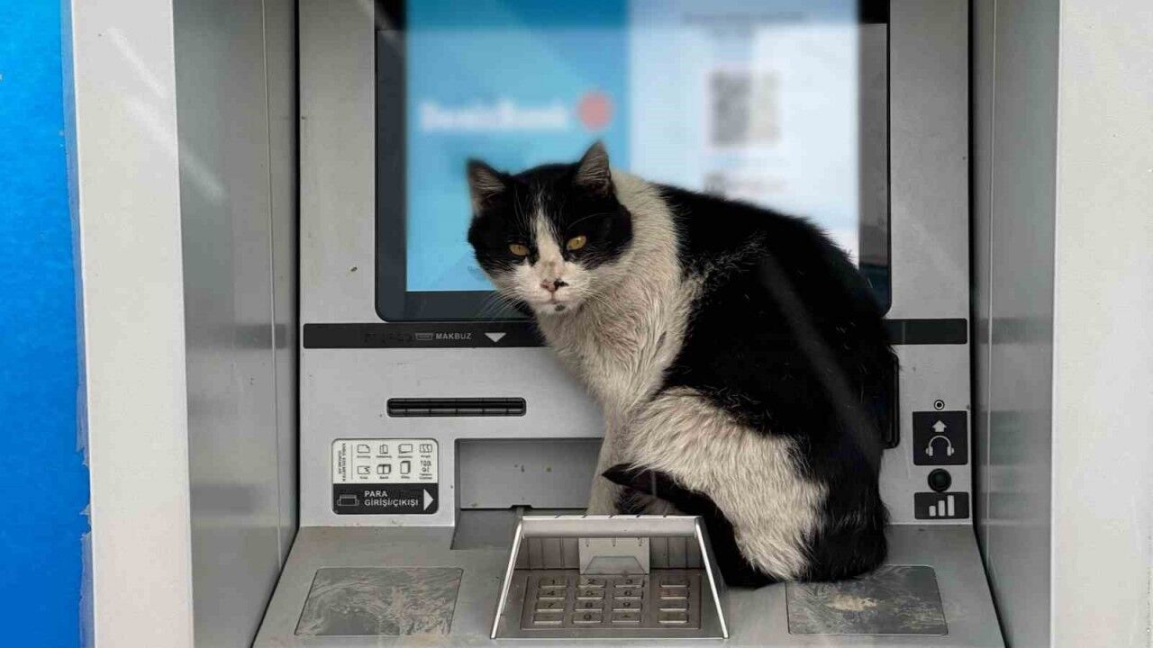 Para çekmeye gelen vatandaşları gülümseten manzara kameraya yansıdı.