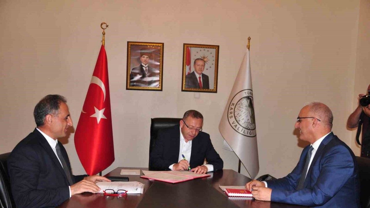 Tarım ve Orman Bakanlığı ile Ziraat Bankası işbirliğinde, küçükbaş hayvancılığını desteklemek amacıyla hayata geçirilen "Köyümde Yaşamak İçin Bir Sürü Nedenim Var" projesinin Kars’ta bu yılda sürdürülmesi amacıyla Vali Ziya Polat başkanlığında Tarım ve Orman İl Müdürü Enver Aydın ve Ziraat Bankası Müdürü Cebbar Boyracı’nın katılımıyla protokol imzalandı.