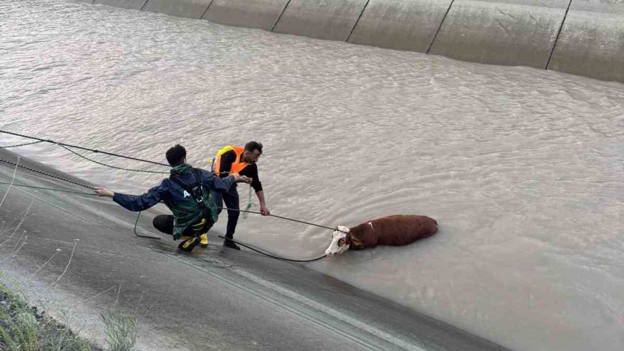 Bölgeye gelen ekipler, hayvanları kurtarmak için çalışma başlattı. Ekipler, halat yardımıyla 6 hayvandan 4’ünü kurtardı. Suya kapılan diğer 2 büyükbaş hayvan ise kurtarılamayarak telef oldu.