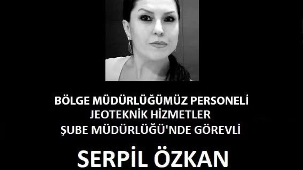 Kurumun sosyal medya hesabından yapılan paylaşımda, "Acı kaybımız. Bölge müdürlüğümüz personeli Jeoteknik Hizmetler Şube Müdürlüğü’nde görevli Serpil Özkan hakkın rahmetine kavuşmuştur. Merhumeye Allah’tan rahmet, kederli ailesine ve tüm DSİ camiasına başsağlığı dileriz" ifadelerine yer verildi.