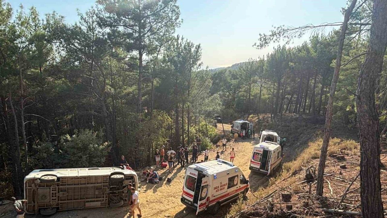 Balıkesir’in Edremit ilçesindeki Kazdağı Milli Parkı’nda tur minibüsünün devrilmesi sonucu 11 kişi yaralandı.