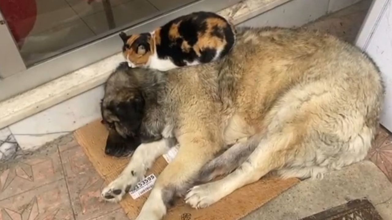 Tunceli’de, soğuk nedeniyle üşüyen kedi, sokak köpeğinin üzerine çıkarak ısınmaya çalıştı. İzleyenlerin içini ısıtan o anları doğa fotoğrafçısı Hasan Aktuğ, cep telefonu kamerasıyla kayıt altına aldı.