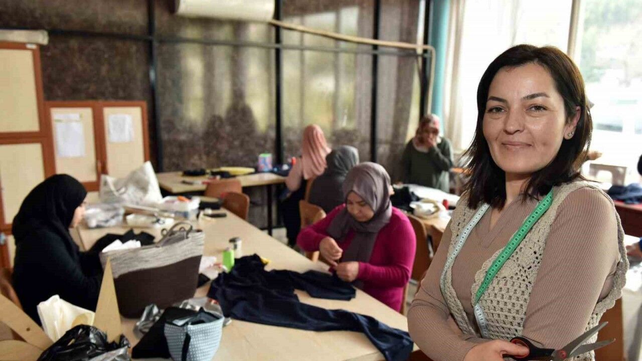 Kepez Belediyesi’nin Antalya Kepez Meslek Eğitim Kursları’nda (AKMEK) en fazla katılımın olduğu giyim sınıflarında, kadınlar dikiş türlerini ve kalıp çıkarmayı öğreniyor.