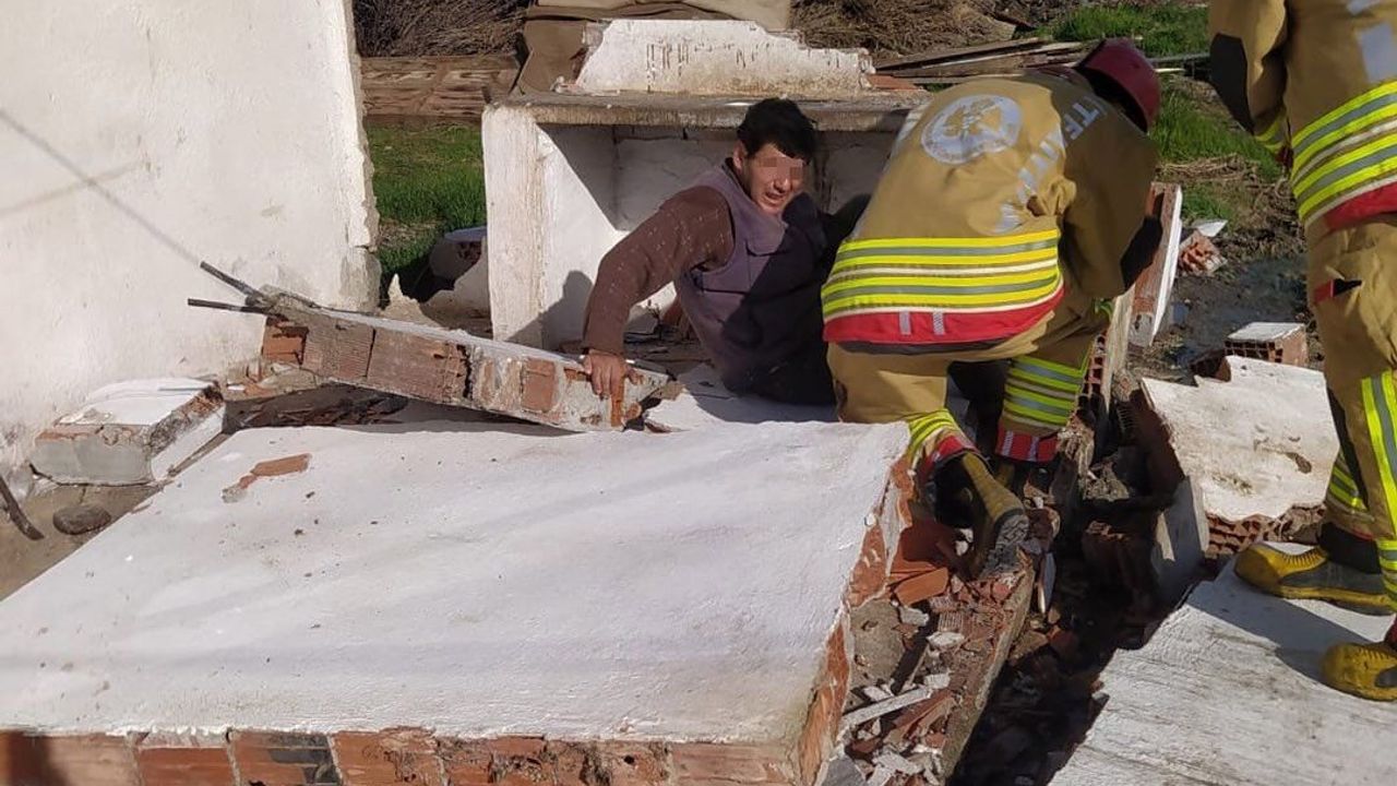 Manisa’nın Kırkağaç ilçesinde yıkılan duvarın altında kalan adam yaralandı.
