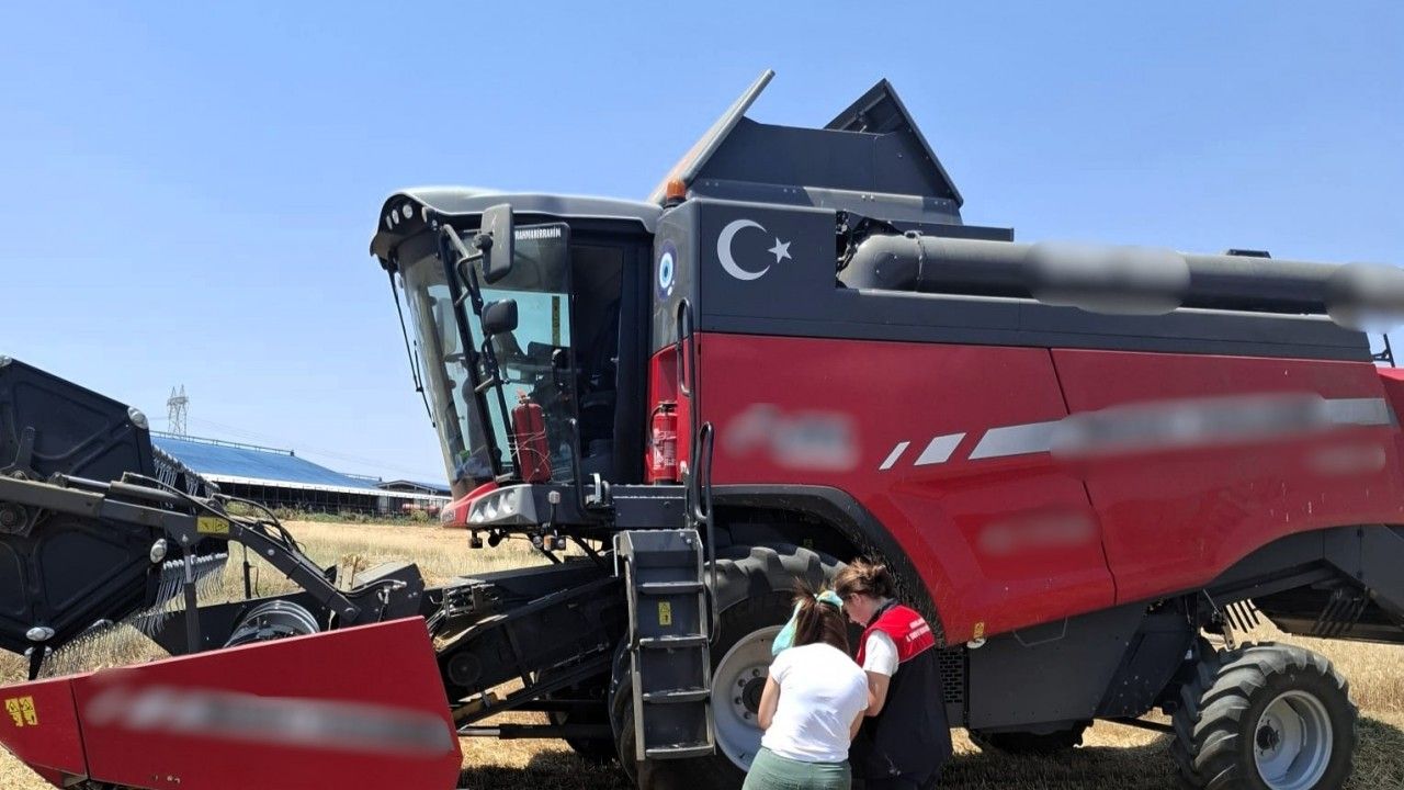 Kırklareli İl Tarım ve Orman Müdürlüğü ekiplerinin yaptığı kontrollerde, dane kayıplarının önüne geçilmesi amacıyla yürütülen çalışmalarda biçerdöverin hasat ettiği buğday ve hasat sırasında oluşabilecek muhtemel yangınlara karşı alınan tedbirleri inceliyor.