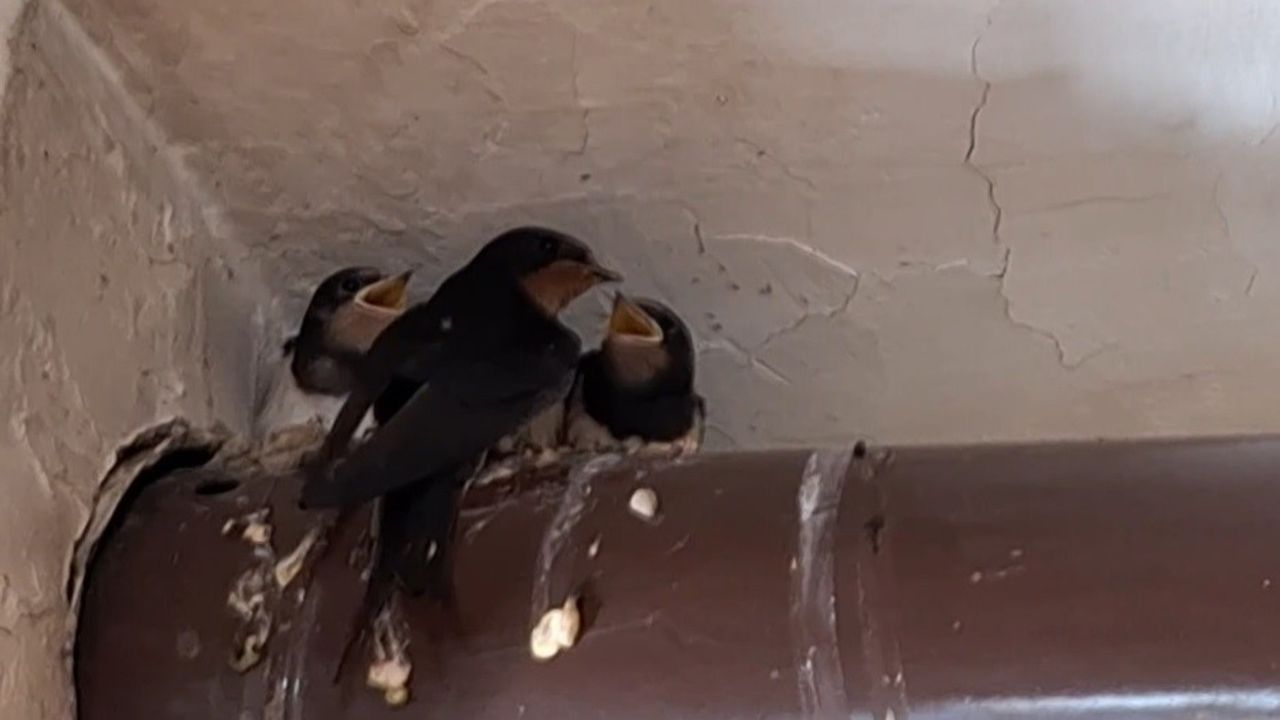Erzincan’da kahvehaneyi yuva yapan 3 yavru ve anne, baba kırlangıç ailesi yürekleri ısıttı.