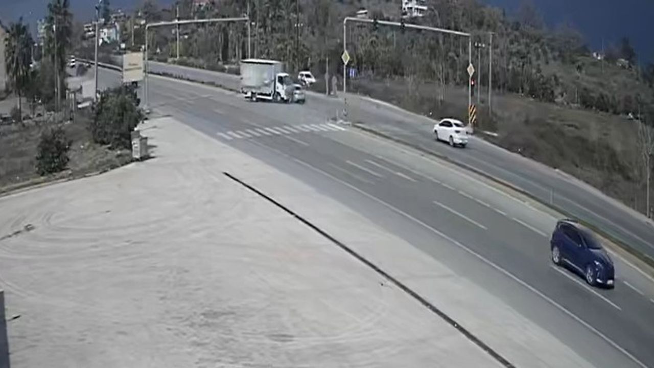 Antalya’nın Manavgat ilçesinde meydana gelen zincirleme kazada, kırmızı ışıkta bekleyen otomobile çarptıktan sonra duramayarak kamyona çarpan otomobilin sürücüsü yaralandı. Kaza anı güvenlik kamerasına yansıdı.