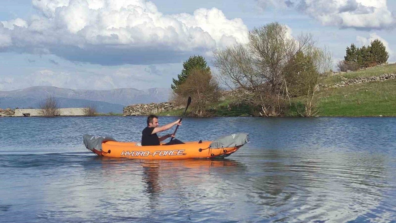 Ardahan’ın Posof ilçesinde doğası ile hayran bırakan Kızıl Göl’de kanoya binenler tabiatla içi içe farklı bir keyif yaşadı.