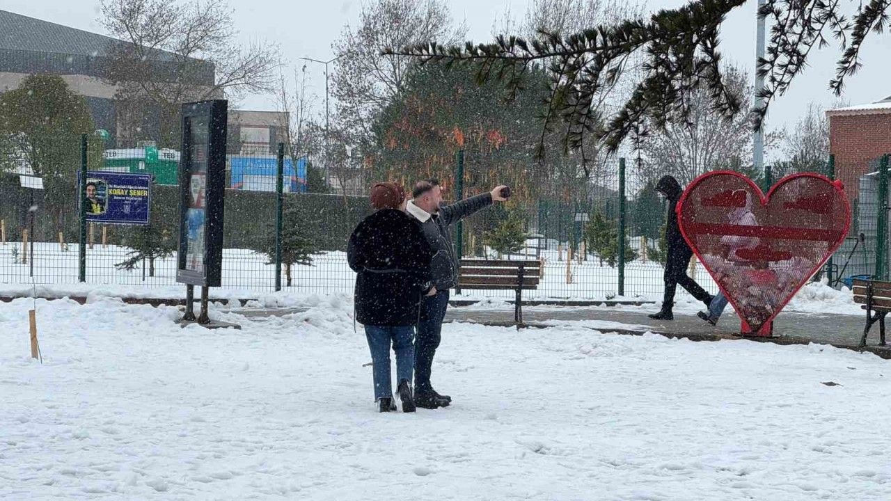 Meteoroloji Genel Müdürlüğünün uyarılarının ardından hava sıcaklığının 1 dereceye kadar düşmesiyle birlikte kentte kar yağışı kendini gösterdi. Sabah saatlerinden itibaren yer yer yoğun şekilde devam eden kar yağışı, evlerin çatılarını beyaza bürüdü. Vatandaşlar ise karlı havada fotoğraf çekmeyi ihmal etmedi.