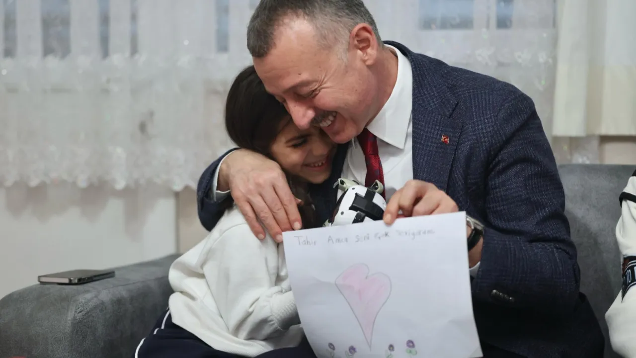 Ramazan ayının birlik, beraberlik ve dayanışma ruhunu vurgulayan iftarda duygusal anlar da yaşandı. Evin küçük kızı Deniz, Başkan Büyükakın’a kendi hazırladığı bir resim kağıdıyla sürpriz yaptı. Kalp resmi bulunan kağıtta, “Tahir Amca seni çok seviyorum” yazıyordu. Bu güzel ve beklenmedik sürpriz karşısında duygulanan Başkan Büyükakın, minik Deniz’e sarılarak teşekkür etti.