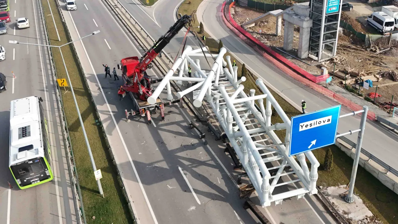 Yüzde 75'inin inşaa çalışaları tamamlanan üst geçidin 120 ton ağırlığındaki dev çelik aksamının montajına başlandı.