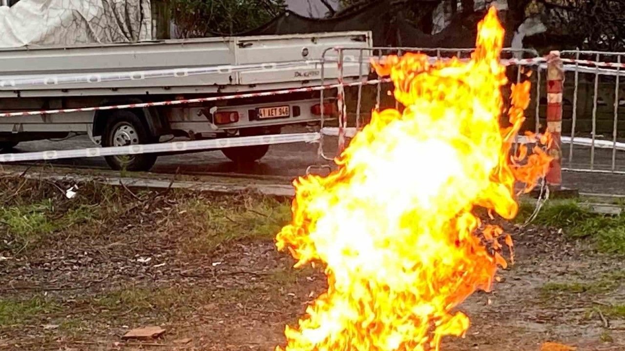 Olay, 17 Şubat’ta saat 14.00 sıralarında Dumlupınar Mahallesi Bedir Sokak’ta metro inşaatının sondaj çalışması sırasında meydana geldi. Yaklaşık 47 metre derinlikte sondaj çalışması yapıldığı sırada yüzeye çıkan metan gazı alevlendi. İhbar üzerine olay yerine AFAD, itfaiye, sağlık ve polis ekipleri sevk edildi. Şerit çeken ve demir bariyerle yangının çevresine girişleri kapatan ekipler, bölgede güvenlik önlemi aldı.