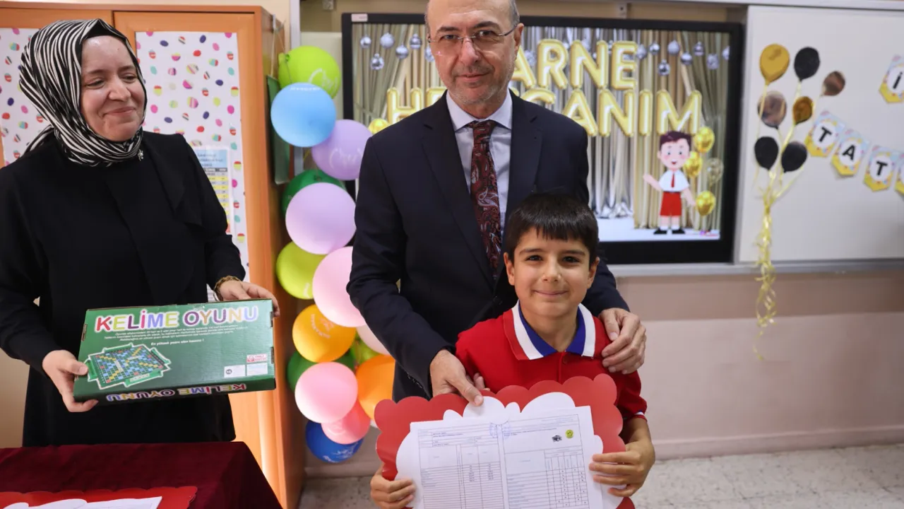 Konya'da Selçuklu Belediye Başkanı Ahmet Pekyatırmacı, Osmangazi İlkokulu’nda düzenlenen karne dağıtım törenine katılarak öğrencilerin karne sevincine ortak oldu.KONYA (İGFA) - 2024-2025 eğitim öğretim yılının sona ermesiyle birlikte uzun bir eğitim öğretim dönemini geride bırakan öğrenciler karne sevinci yaşadı.