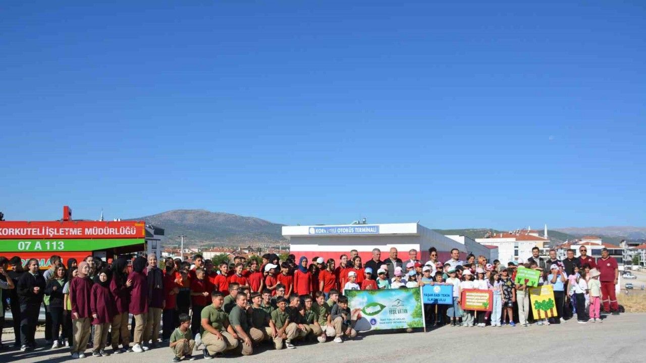 Korkuteli ilçesinde ’yeşil vatan’ temalı etkinlikte öğrencilerin hazırladığı pankartlar ve dövizler sergilenirken, 300 öğrencinin katıldığı fidan dikiminde 300 fidan toprakla buluşturulup can suyu verildi.