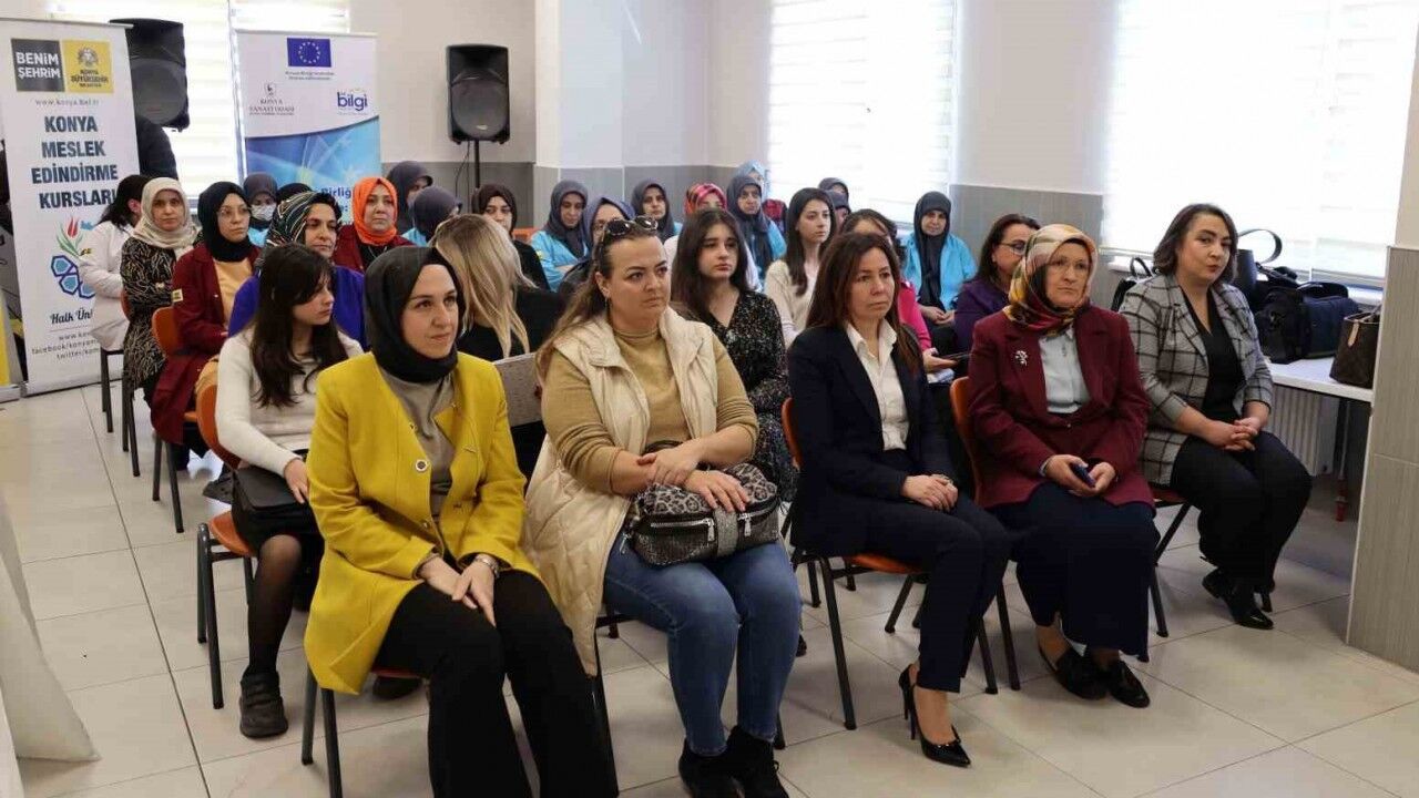 KOMEK Kurs Merkezi’nde düzenlenen programda, toplumun her alanında yer alan kadınların iş hayatında daha da güçlenmesi gerektiğine vurgu yapıldı. AB Türkiye Delegasyonunun desteğiyle düzenlenen etkinlikte Konya Sanayi Odası Genel Sekreter Yardımcısı Zübeyde Yılmaz, KOMEK Kooperatif Başkanı Sacide Can Bakacak, Selçuk Üniversitesi Erasmus Koordinatörü Doç. Dr. Özlem Altunsu Sönmez, TOBB Konya Kadın Girişimciler Kurulu İcra Kurulu Üyesi Esra Erkuş ve Myreason Dış Ticaret ve Danışmanlık Şirketi Kurucusu Nazlı Şahin, kadınların sanayiden iş hayatına, akademik hayattan gündelik yaşamına değin birçok konuda tecrübelerini paylaştılar.