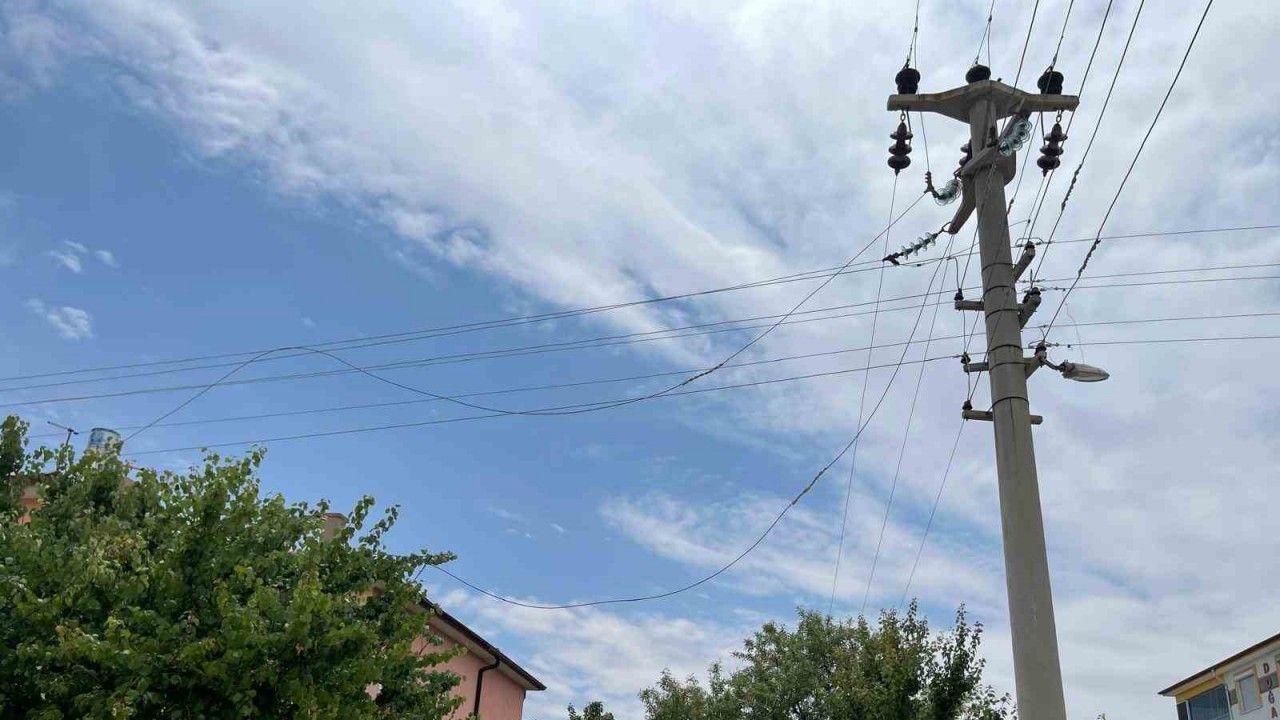 Konya’nın Kulu ilçesinde elektrik direğindeki tel rüzgar nedeniyle koparken, mahalle sakinleri elektriksiz kaldı.