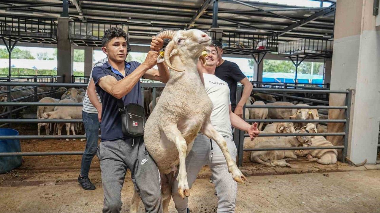 Öte yandan çadır altında bekleyen koçlar sıcak hava sebebiyle terlerken, yetiştiriciler ise hayvanların serinlemesi için farklı yöntemlere başvuruyor. Hayvan sahipleri, özellikle ayaklarda pişik ve sıcak çarpması riskine karşılık, kurbanlık koçların ayaklarına hortumla su tutarak serinletmeye çalışıyor.