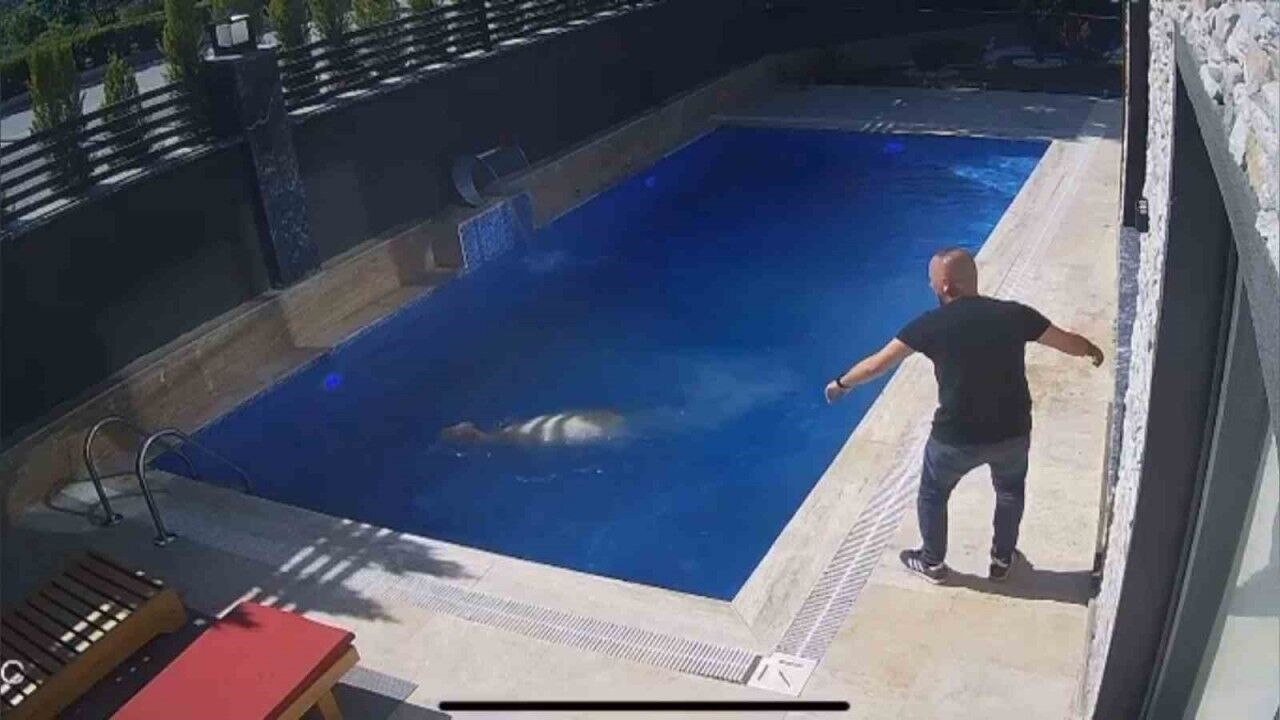 Bursa’nın İnegöl ilçesinde firar eden kurbanlık koç, havuza atladı. O anlar güvenlik kamerasına yansıdı.
