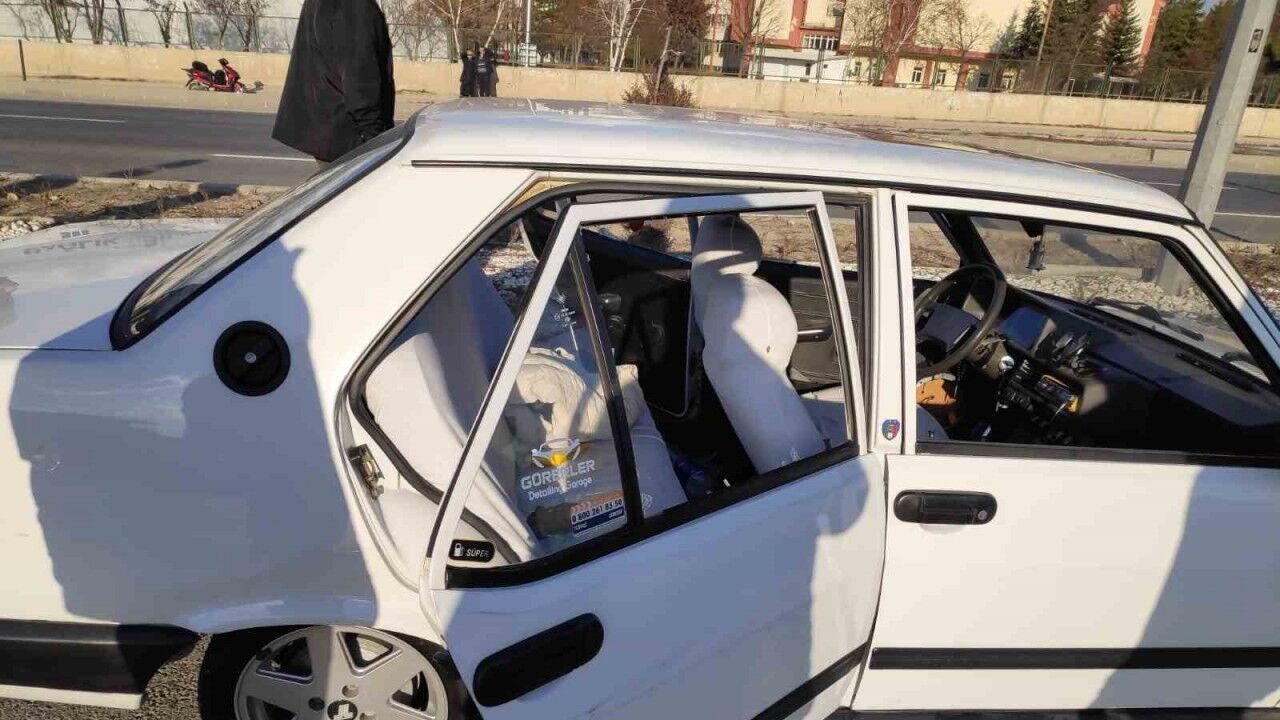 Aracın camları, sol dikiz aynası ve arka çamurluğu da zarar gördü. Baba ve oğlun sağlık kontrollerinde hayati tehlikelerinin olmadığı belirtildi.