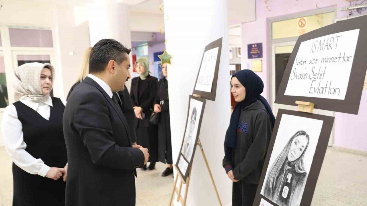 Sivas Mehmet Gökhan Ay Anadolu Lisesi öğrencilerinin 18 Mart Şehitleri Anma Günü ve Çanakkale Zaferi’nin 110. yıl dönümü dolayısıyla şehitlerin resimlerini çizdikleri sergi ziyarete açıldı.