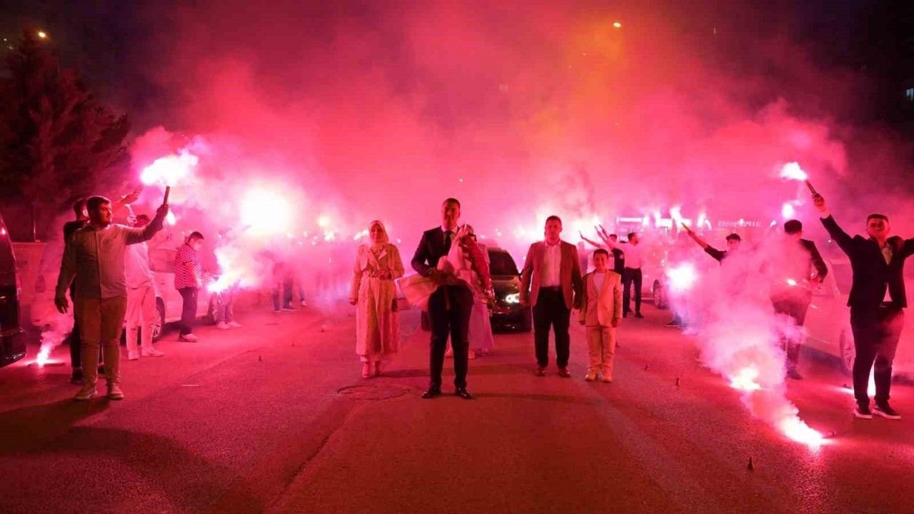 Konya’da esnaf genç, mahalleyi festival alanına çevirerek kız istemeye gitti. Meşalelerle yapılan şov, sosyal medyada büyük ilgi gördü.