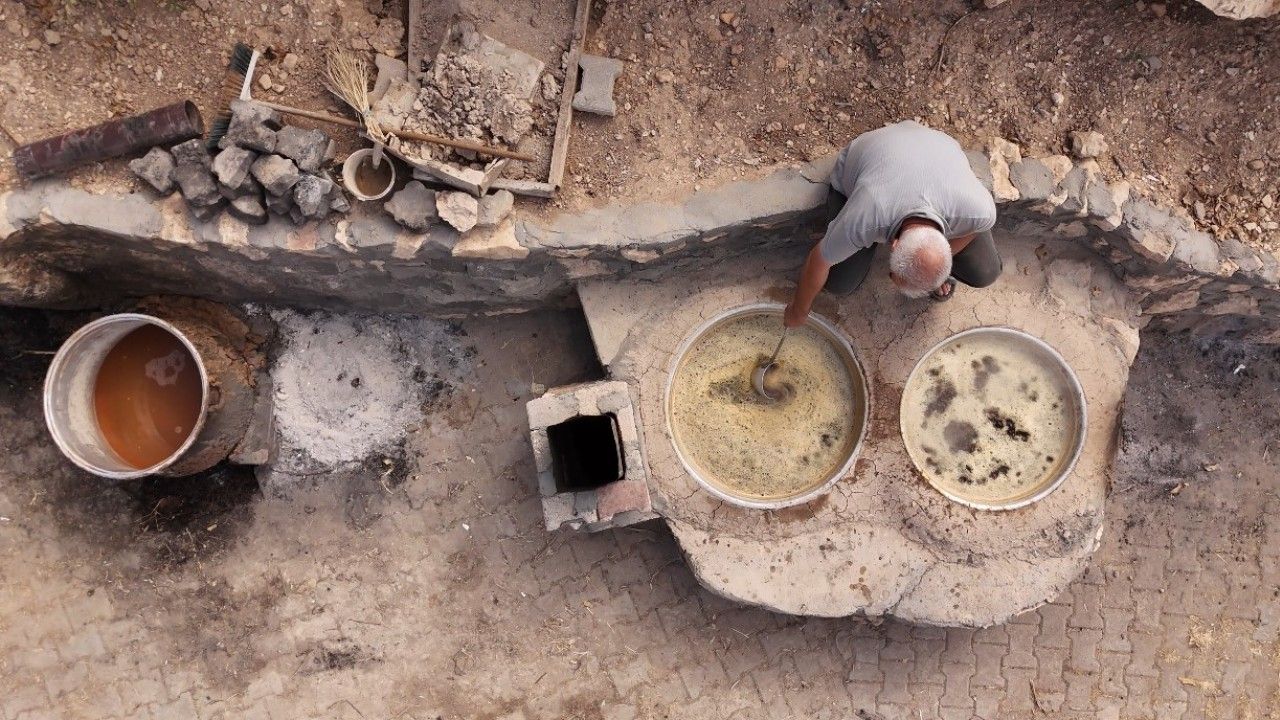Mardin’in Mazıdağı ilçesine bağlı kırsal mahallelerde mazrone ismi verilen üzümden yapılan ve beyaz toprakla mayalanan meşhur pekmez, şifası ve lezzetiyle mutfakların vazgeçilmezi oluyor. Kış aylarında sofraların vazgeçilmezi olan pekmez, üzüm hasadı ile kazanlarda kaynamaya başladı.