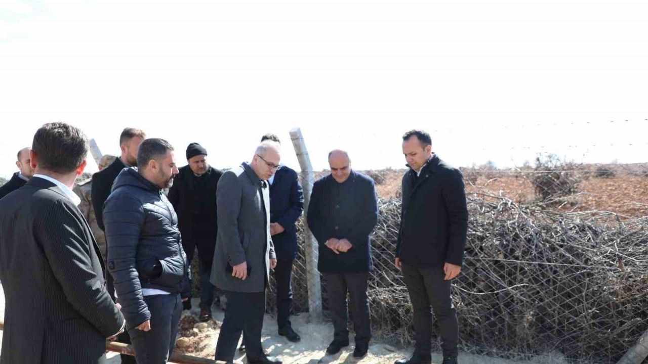 Ömerli Kaymakamı Furkan Çakır, Ömerli Belediye Başkanı Hüsamettin Altındağ, MARSU Genel Müdürü Murat Erçin ve Plan Proje Daire Başkanı Güven Bayraktar ile birlikte sondaj kuyusu çalışmalarını yerinde inceledi.