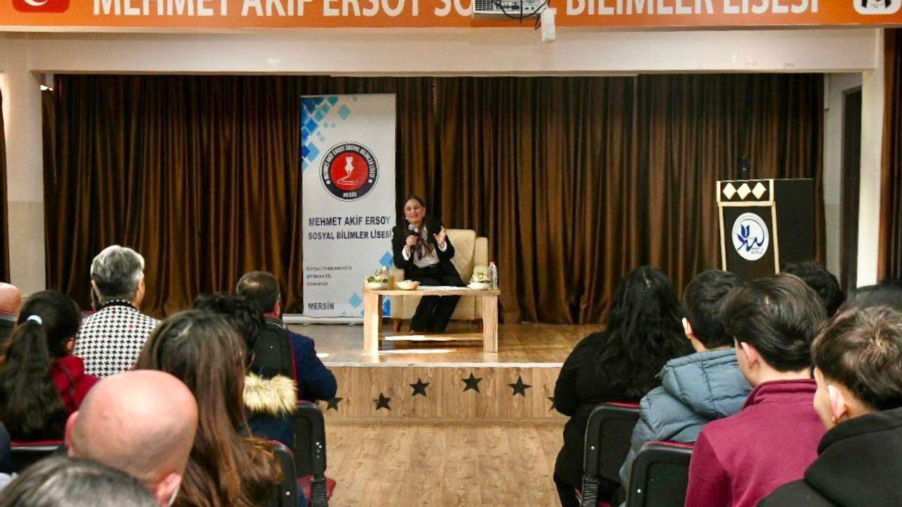 Mersin Valisi Atilla Toros’un eşi , Yargıtay Üyesi Dudu İrem Toros Hanımefendi, Mehmet Akif Ersoy Sosyal Bilimler Lisesi’nde öğrencilerle bir araya geldi. Okulda düzenlenen “Kariyer Günleri” programına konuk olan Toros, mesleki yaşamına ilişkin deneyimlerini öğrencilerle paylaştı.