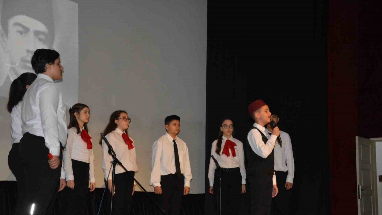Program, saygı duruşu ve İstiklal Marşı’nın okunmasıyla başladı. Günün anlam ve önemiyle ilgili konuşmayı Kemal Pireci Ortaokul Müdürü Cüneyt Taşkın yaptı. Taşkın, "İstiklal Marşı’nın kabul edilişinin 104. yıl dönümünü büyük bir gururla kutluyoruz. Aziz milletimizin milli ve manevi değerlerini, acılarını ve duygularını yüreğinde hisseden Mehmet Akif Ersoy, bilgisini, heyecanını ve umudunu milletiyle paylaşmış; diriliş harekâtının başlamasına, Milli Mücadele ruhunun alevlenmesine öncülük etmiştir. Milli birlik ve beraberliğimizi, milletimizin bağımsızlığa olan tutkusunu en veciz biçimde ortaya koyan İstiklal Marşı, İstiklal Mücadelesi’ni geleceğe taşıyan en önemli metindir. Milli şairimiz Mehmet Akif, ‘Allah bu millete bir daha İstiklal Marşı yazdırmasın’ derken, bağımsızlık yolunda ödenen bedellerin büyüklüğünü dile getirmiştir. İstiklal Marşı’nın kabulünün 104’üncü yılında, başta Gazi Mustafa Kemal Atatürk ve silah arkadaşları olmak üzere, İstiklal Savaşı şehitlerimizi, gazilerimizi ve Mehmet Akif Ersoy’u rahmet, şükran ve minnetle anıyorum" dedi.