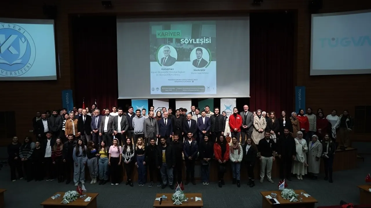 Kayseri Büyükşehir Belediye Başkanı Dr. Memduh Büyükkılıç, Türkiye Gençlik Vakfı (TÜGVA) Kayseri İl Temsilciliği tarafından gerçekleştirilen Kariyer Söyleşisi programında gençlerle tecrübelerini paylaştı.KAYSERİ (İGFA) - Kayseri Büyükşehir Belediye Başkanı Dr. Memduh Büyükkılıç, Kayseri Üniversitesi 15 Temmuz Yerleşkesi Kültür ve Kongre Merkezi’nde gerçekleşen Kariyer Söyleşisi programına konuşmacı olarak katılırken, programın moderatörlüğünü Murat Suat Arsav yaptı.