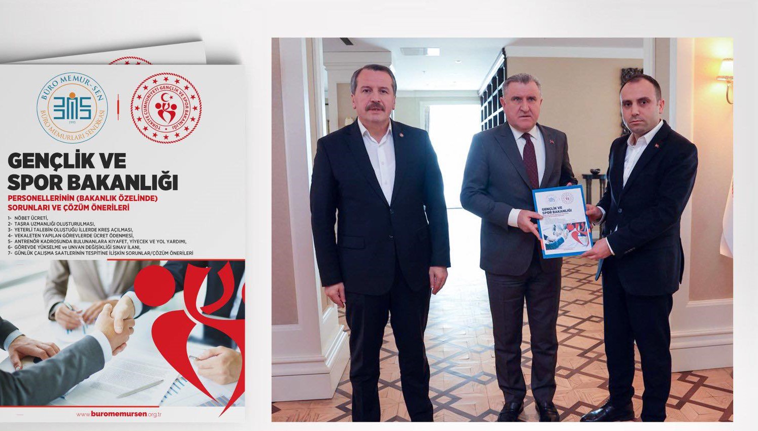 Büro Memur-Sen Genel Başkan Yardımcısı Ahmet Kızıl, Konfederasyon Başkanı Ali Yalçın ile birlikte Gençlik ve Spor Bakanı Dr. Osman Aşkın Bak’ı makamında ziyaret etti.