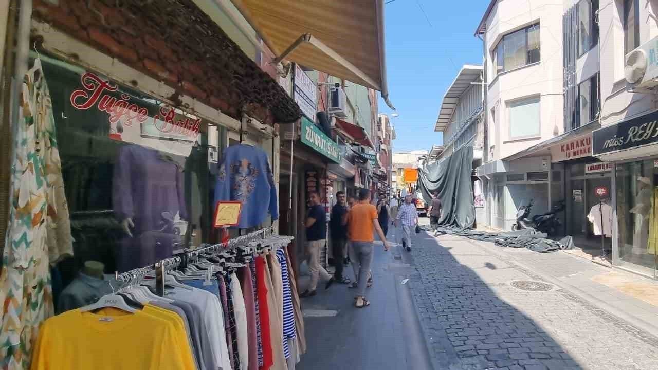 Denizli’de kentin en uğrak noktaları arasında yer alan Merkezefendi ilçesi Saraylar Mahallesi’nde araç trafiğine kapalı olan 355 sokak üzerinde esnaflar 12 yıldır kendi aralarında para toplayarak sokak üzerini tente ile kapatıyordu. Sokak üzerini tamamen kapatan tente hem Bayramyeri esnafının ürünleri güneş ışınlarından koruyor, hem de vatandaşlar sıcaktan korunarak rahat alışveriş yapma imkanı sağlıyordu. 12 yılın ardından bölge esnafı ilk kez bu yıl Merkezefendi Belediyesi’ne dilekçe vererek, sokak üzerine tente yapılmasını talep etti. Esnafın talebi doğrultusunda Merkezefendi Belediyesi sokağın üstünü tente ile kapatarak esnafın talebini karşılamıştı. Merkezefendi Belediyesi imkanlarıyla esnaf talebi doğrultusunda takılan tente yine Merkezefendi Belediyesi tarafından sökülmesiyle esnafa adeta soğuk duş aldırdı. Merkezefendi Belediyesi ekiplerinin vinç yardımıyla tentenin söküldüğünü gören esnaf belediyeden tente talebinde bulunduklarına pişman oldu. Belediye tarafından sökülen tenteyi esnaf önümüzdeki günlerde geçmişte olduğu gibi kendi arasında para toplayarak tekrar taktıracağı belirtildi.