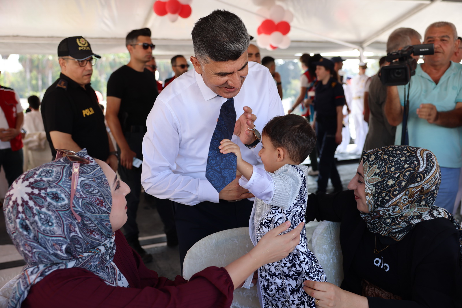 Program kapsamında sünnet olan çocuklara Mersin Valisi Atilla Toros, eşi Dudu İrem Toros ve protokol üyeleri tarafından bisiklet, çeyrek altın ve çeşitli hediyeler takdim edildi. Etkinlikte ailelere yemek ikramında bulunulurken, çocuklar için de özel sahne gösterileri hazırlandı. Karagöz-Hacivat ve Nasrettin Hoca tiyatro gösterileri miniklere neşe dolu anlar yaşattı. Eğlenceli oyunlar, kahkahalar ve alkışlar eşliğinde çocuklar doyasıya eğlenirken, etkinlik adeta bir bayram havasında geçti.