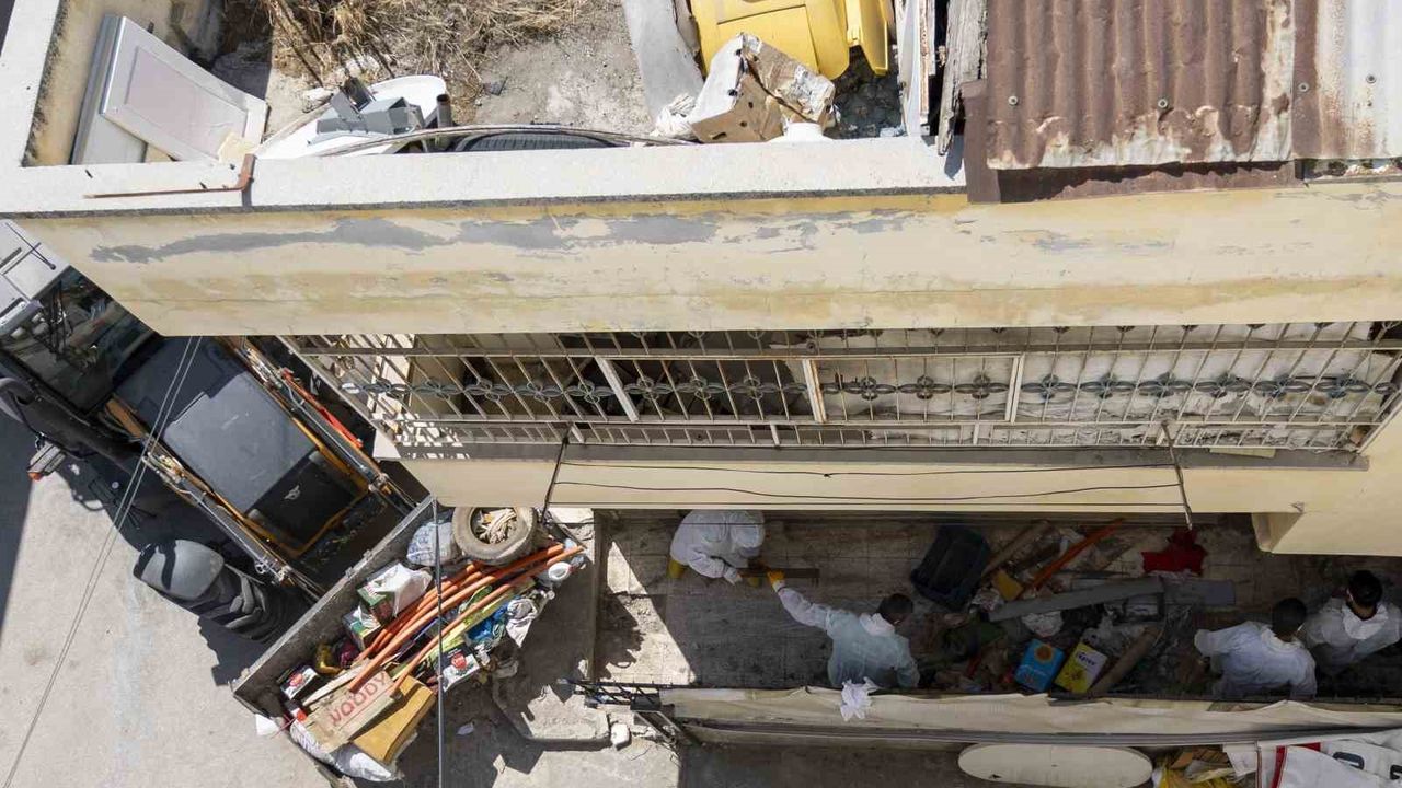 Evden çıkarılan evsel atıklar, bozulmuş eşyalar ve çöpler kamyonlara yüklenerek uygun şekilde bertaraf edildi. Temizlik çalışması sırasında çevrede gerekli güvenlik önlemleri alınırken, işlemlerin ardından Mersin Büyükşehir Belediyesi Haşere ile Mücadele Şube Müdürlüğü ekipleri de evde ve çevresinde ilaçlama çalışması gerçekleştirdi.
