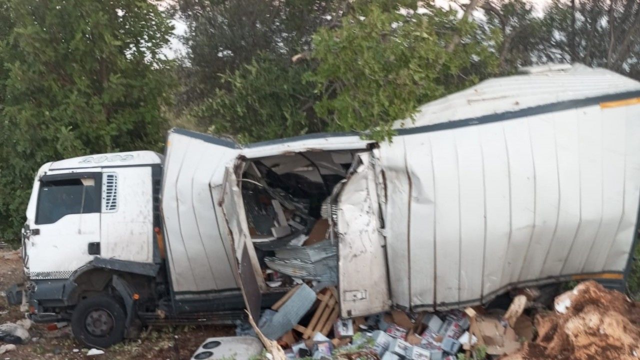 Mersin’in Erdemli ilçesinde kamyon, bariyerleri aşıp şarampolde ağaçlara çarptı. Kazada 2 kişi yaralandı.