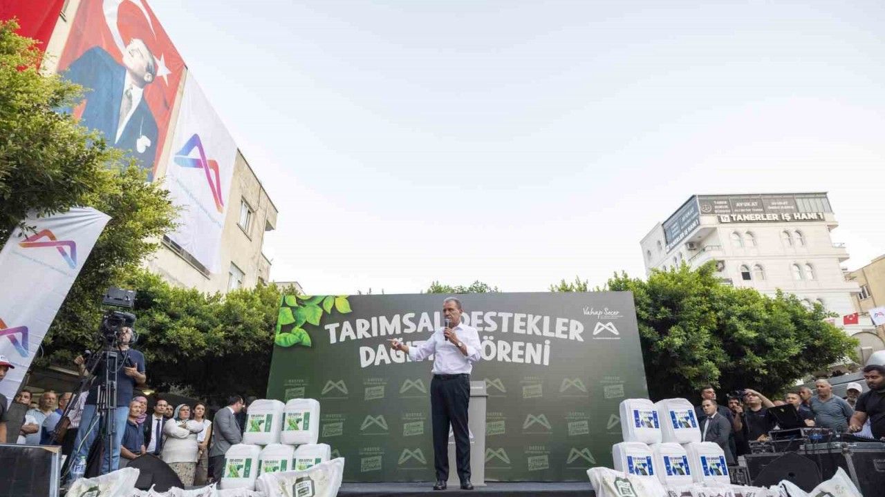"Sizleri görünce yüzümüzde güller açıyor. Bütün sıkıntılarımızı unutuyoruz" diyerek konuşmasına başlayan Belediye Başkanı Vahap Seçer, üreticilere yapılan desteklerin ilk olmadığını ve son da olmayacağını belirterek görevde oldukları sürece üreticinin yanında olmaya devam edeceklerini söyledi.