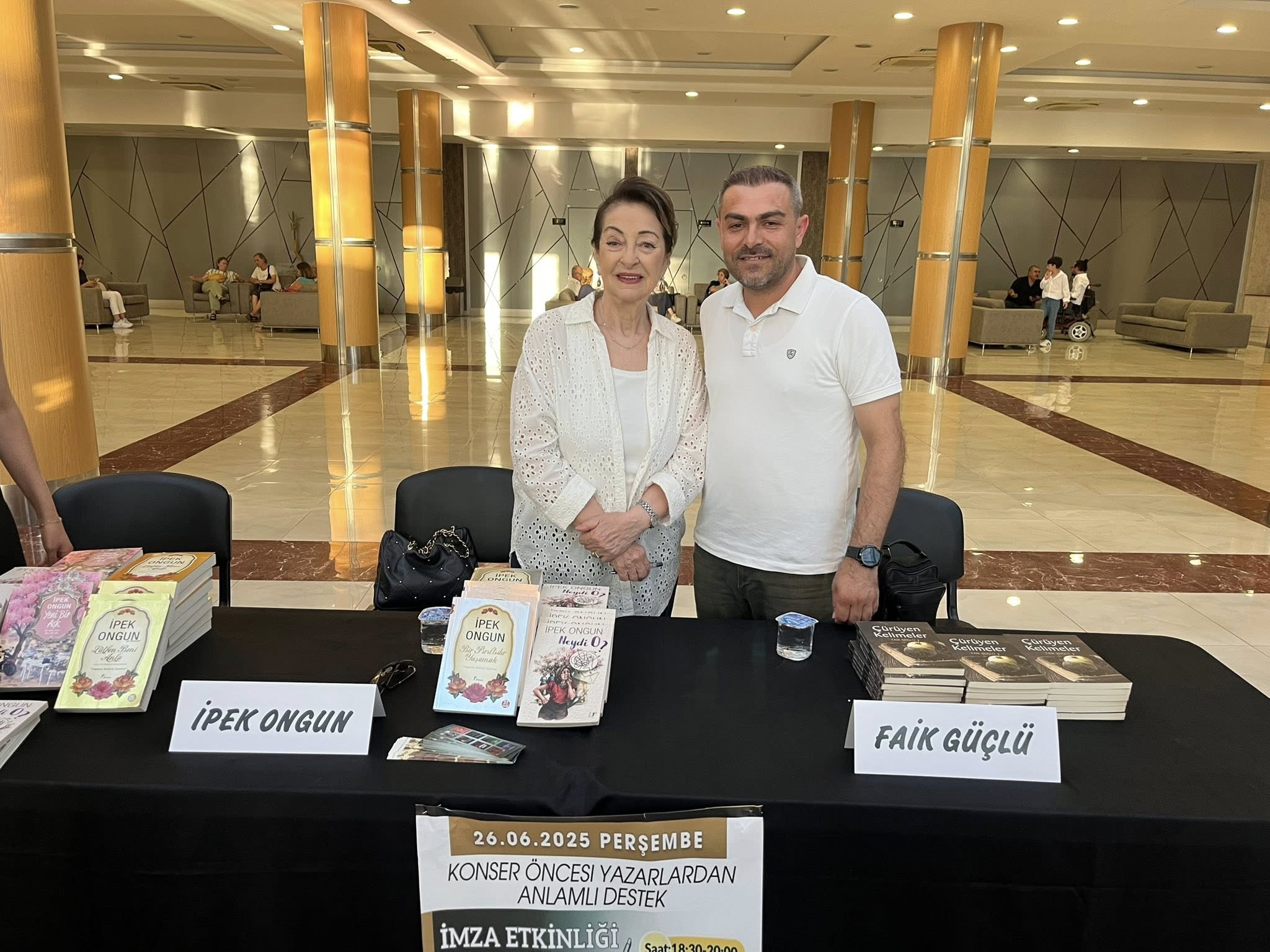 “Konser Öncesi Yazarlardan Anlamlı Destek” temasıyla gerçekleştirilen İmza Etkinliği, saat 18:30’da başlayarak 20:00’ye kadar sürdü. Etkinlikte, aralarında Mersintime yazarlarından eğitimci-yazar Faik Güçlü’nün de bulunduğu birçok Mersinli yazar yer aldı.