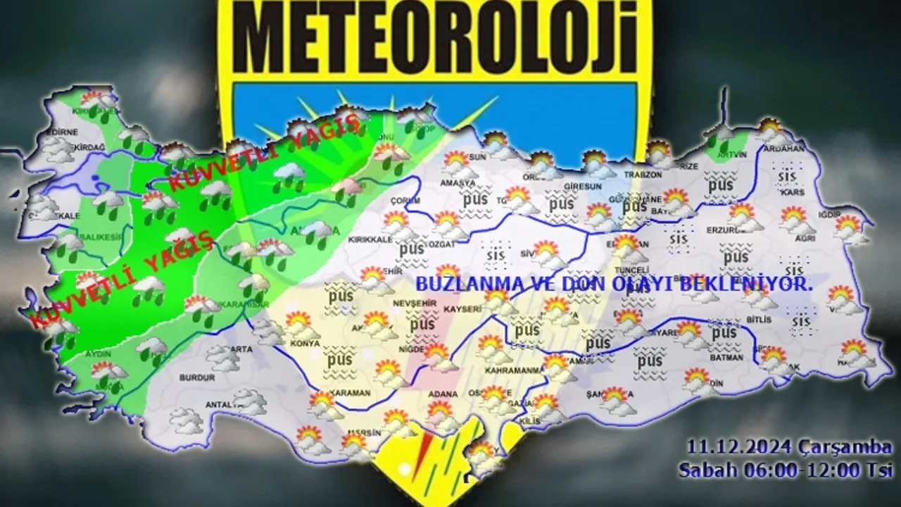 Yağışların; Marmara'nın doğusu, Kuzey ve Kıyı Ege ve Batı Karadeniz ile gece saatlerinden itibaren Ordu, Giresun, Rize çevreleri, Artvin'in kıyı kesimleri ve Trabzon'un doğusunda yerel kuvvetli olması bekleniyor. Ülkemizin doğu kesimlerinde buzlanma ve don olayı ile birlikte pus ve yer yer sis bekleniyor.