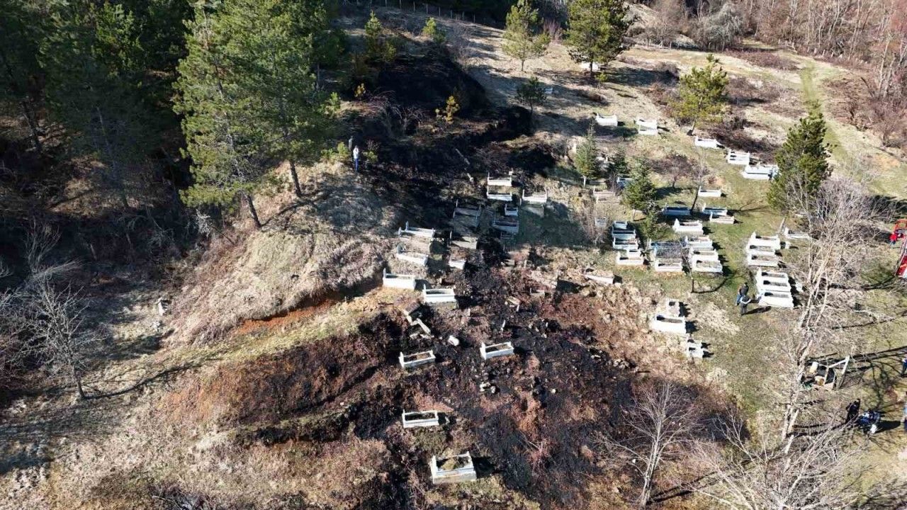 Bolu’nun Mengen ilçesinde mezarlıkta temizlik yapan vatandaşlar, topladıkları çalı ve kuru otları yaktı. Mezarlığın tamamına yayılan alevler, ormana sıçramadan ekipler tarafından söndürüldü.