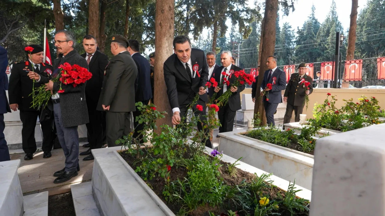 Manisa Garnizon Şehitliğinde düzenlenen programa, Manisa Valisi Vahdettin Özkan, Manisa Büyükşehir Belediye Başkanı Mimar Ferdi Zeyrek, İl Jandarma Komutanı Tuğgeneral İlhan Şen, Cumhuriyet Başsavcısı Kurtca Eker, MCBÜ Rektörü Prof. Dr. Rana Kibar, siyasi parti temsilcileri, sivil toplum örgütlerinin üyeleri ve vatandaşlar katıldı. Şehitlikteki tören, anıta çelenk sunulmasıyla başladı. Saygı duruşunda bulunulması ve İstiklal Marşı’nın okunmasının ardından saygı atışı yapıldı.